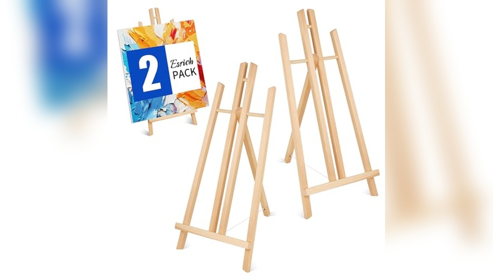 The ESRICH 2pcs 17 Inch Tabletop Easels are ideal for beginners. They are portable, adjustable, and easy to use. This easel supports various canvas sizes and is perfect for kids and students starting acrylic painting.
