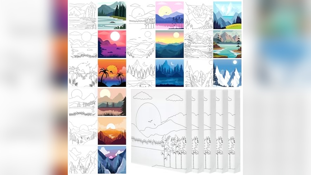 - Includes 16 pre-drawn canvases with a beautiful sunset landscape design